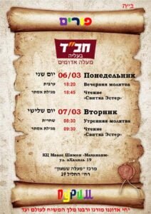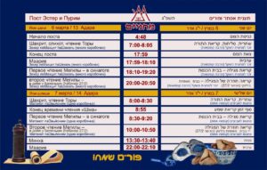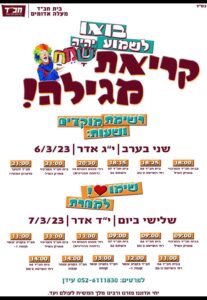 זמני קריאת מגילה בבתי הכנסת – יצחקי, מחניים, חב"ד, רינת המעלה,